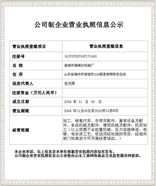 | 現(xiàn)有中,高級技術(shù)人員數(shù)名有多年的設計與制造畜禽宰殺機械的理論和經(jīng)驗 | |||||